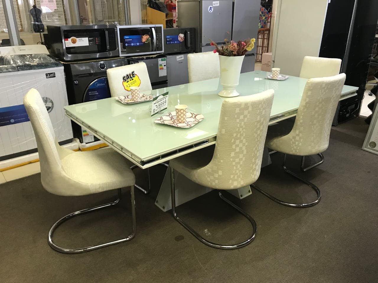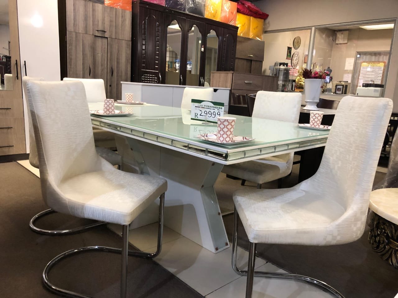 7 PC WHT D/R/S R39 999,00 6 Chairs & Table 7 PC WHT D/R/S quantity Add to cart Category: Dining Suite Related products Quick View Quick View Dining SuiteGABRIELLA D/R/S R59 999,00 Add to cart Quick View Quick View Dining SuitePLATNUM D/R/S R75 000,00 Add to cart Quick View Quick View Dining Suite9 PC NEPAL D/R/S R27 999,00 Add to cart