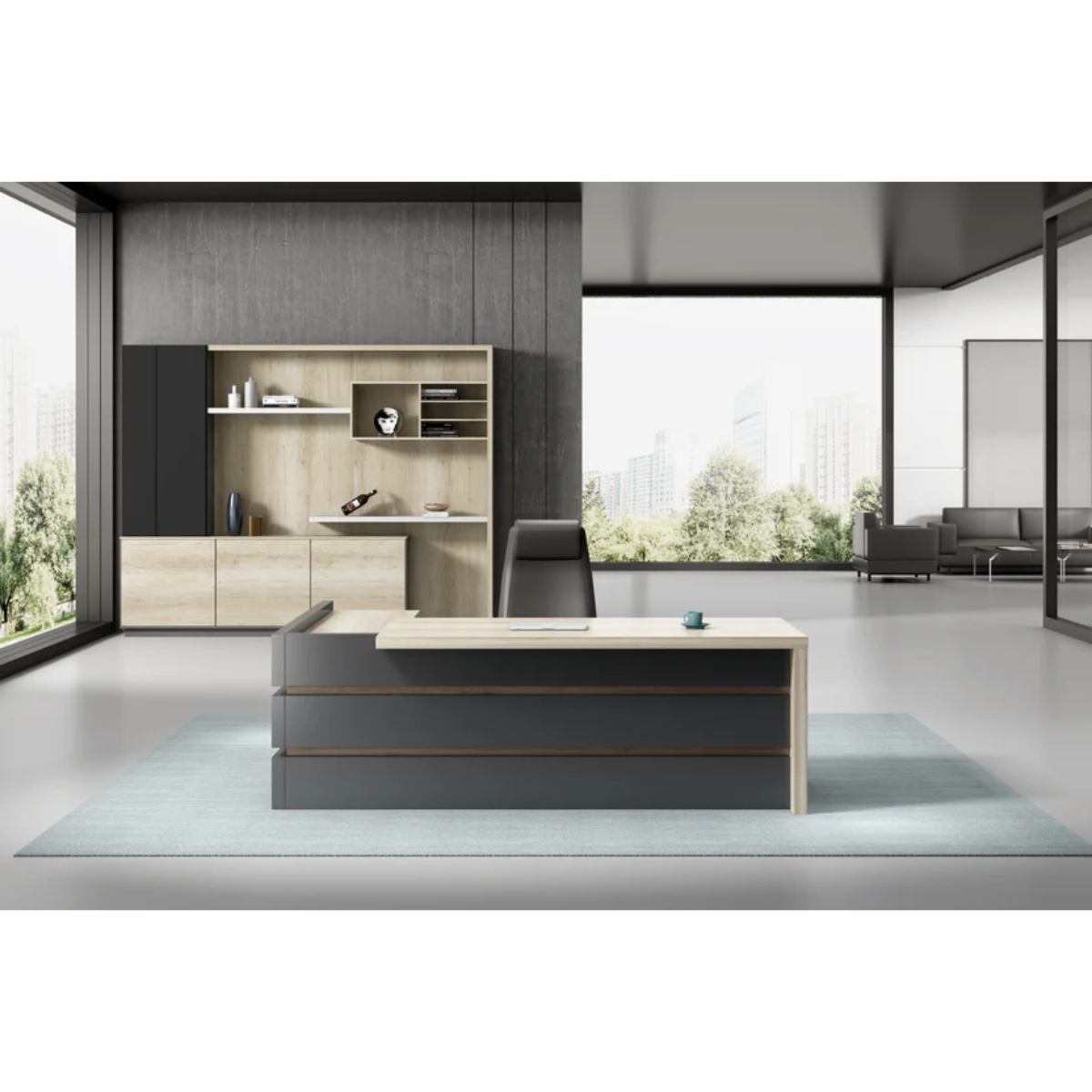 The extended return enhances productivity by creating a dedicated secondary workspace for documents, equipment, or collaborative tasks. Its clean and structured design profile makes it a strong fit for executive, managerial, or professional office environments that require both functionality and presentation.